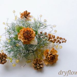 …dryflower… *松ぼっくり *シダーローズ *洋種ヤマゴボウ 漂白した白色を期待していたけど 乾燥したらシックな色合いに💛… ナチュラルな雰囲気も素敵✨