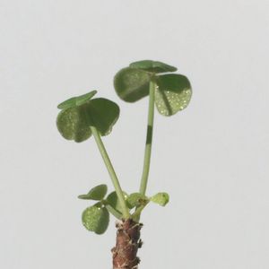 メキシコオキザリス カルノーサだと思っています。 …塊根クローバーです。 葉っぱが出てはポロポロ落ち、また葉っぱがニョキニョキと出ます♪( ´▽`)。 黄色い花が咲くよ、と言われて早2ヶ月。 葉っぱだけ🤣🤣。 でも、小ちゃくて可愛いからいいです💕。