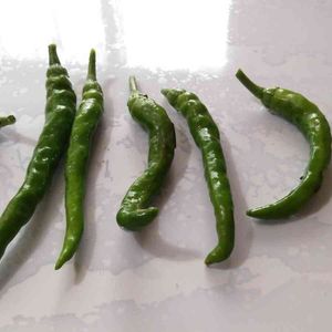本日2回目夕方の収穫です♪😆 初収穫の青唐辛子♪ 辛いかな〜?