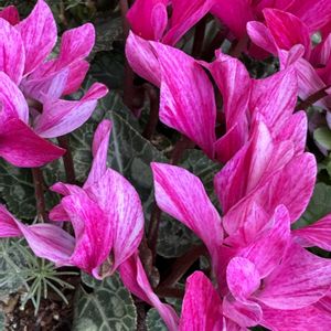 今日のお花🔸シクラメン🔸 ① 職場の窓際に置いたシクラメン・クレヨン🖍️ クレヨンで描いたようなかすれ感がとても魅力で、ネームがぴったりで可愛いです🎶 ② 我が家のガーデンシクラメン💓 ダークな深紅色なのですが、実際の色には撮れませんでした🖤❤️😅