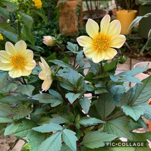 おはようございます⸜(*ˊᗜˋ*)⸝ 週末にお迎えした優しいクリームイエローのダリアです(✿˙◁˙✿) ホッコリしてくださいね~♡♬︎♡ 今日もいい日になりますように💛🧡