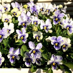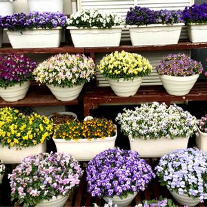 おはようございます😊 身元ビオラ ライジングアイスが盛り盛り咲いてきました🥰 スジ模様が更に綺麗でうっとりします💕 身元さんのビオラは株張りがとっても元気なのでお一人様で植えました😊 1人では寂しいかも?と雑貨で応援しました😊✊ 三連休皆様楽しく過ごせます様に🥰🍀