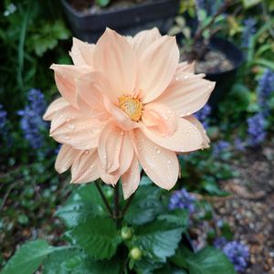 ラベラグランデ チョコレートアプリコット 光沢のあるダークリーフが特徴の八重咲きダリアです。新商品で販売されていたので試しに栽培中です。非常に目立つ花でベランダ栽培の中で一番目立ってます。