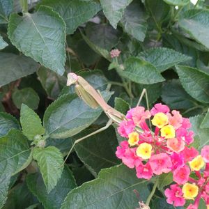 可愛いカマキリ発見😆 ンっ何! と睨まれてるような😁 2枚目はフジバカマ 蕊のモシャモシャが豪華に 見納めを飾ってくれています