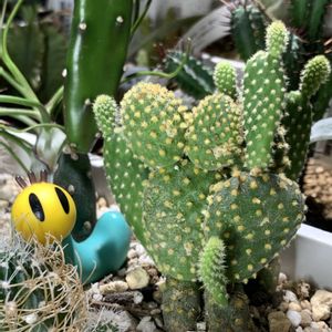 国内入手苗 opuntia santa rita 去年の10月にご紹介させて頂いた santa rita の大苗が初めて開花致しました。 イエローカラーの花弁に中心部からオレンジカラーの筋が入ったような大きくてボリュームのある可愛らしい花です。 本日メルカリにて新たにオプンチアを出品致しました。 全て1苗のみの出品となります。 宜しければご検討下さいませ。