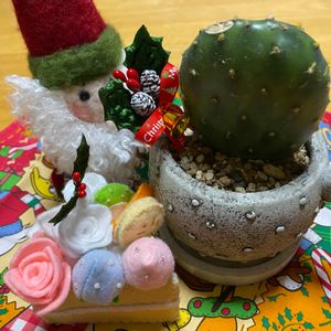 テーブルの上のサボテンも、今夜はクリスマス仕様🎄←ケーキの飾りを挿しただけ🤣