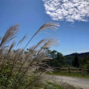 アオゾラ満点の中、 和歌山県の有名な 生石高原、青空の中 360度 ススキ ススキだらけ の中を歩いた 次回は夕陽を浴てキラキラ輝いてるススキを見てみたいと思いながら帰宅途中、ヤッパリ 目指すは輝くススキを見に行く車 車 車 の渋滞 考える事は皆の同じでした 😅💦 😆💦 青空満天 👍️ ススキ 満天 👍️でした
