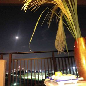 こんばんは😃🌃 お月様が真ん丸でとてもきれいでした😄 部屋の中から撮影しました❗ 電器の向こうにポチっと写っているのがお月様です😆。 早くコロナが終息しますように🙏