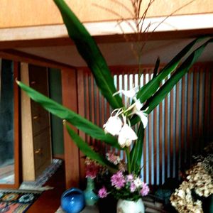 台風⚡️🌀☔️で昨日 花材が取れなかったので 先週の残りを無理して使い 職場のまわりで花材探し