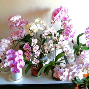 我が家の今年の胡蝶蘭 7種類 押し合い圧し合いですが全部で9鉢全員集合❗ 頂き物ばかりなので似たような色になってます 又来年も咲いてくれることを願います 長い間お付き合い下さいましてありがとうございました🤗