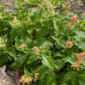 ↖️オンタデ雄株(御蓼) タデ科 ↙️メイゲツソウ雌株(明月草) タデ科 同じタデ科のイタドリの仲間で、シロバナをオンタデ、赤花をメイゲツソウと、いうようです。 いたる所に群落を作っていました。 乗鞍岳畳平にて
