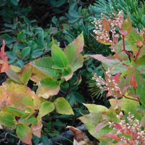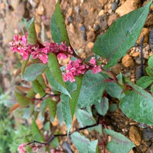 御蓼(雌株) 別名 イワタデ タデ科 花 6月〜10月 ウラジロタデより全体に毛が少なく、成長すると両面の毛が落ちて裏面が緑色となる。 よく似たウラジロタデは葉の裏面に白毛を密生している点で、区別される。 赤みがかるのは雌花、白く見えるのが雄花。秋には黄色く紅葉する。