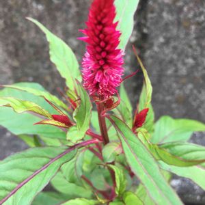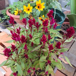 零れ種から、 ヒマワリ🌻のそばに─ ケイトウが咲きました💗 これは、 ノゲイトウかしら⁉️