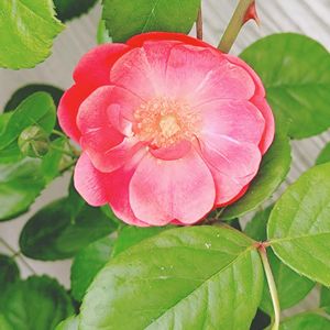 バラ アンジェラ 開花✨ 満開 冬剪定で少しだけ剪定 枝を多めに残したら こぢんまりと 枝を長くしたいのに 思うように行かない 今度の冬は強剪定で 枝数減らしてみようかな?