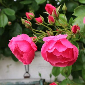 薔薇アンジェラ アイアンアーチの上から咲き始めて来たので、中々撮れずにいましたが、下の方で咲いたクレマチス彗星2号とコラボして?くれました🩷🌹💜