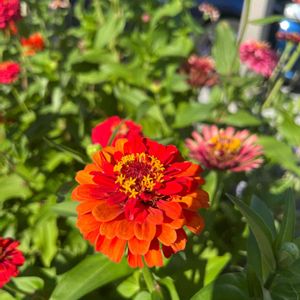 ちょっと遅めに6月頃に 種蒔きしたジニア** ミックスの種だったのに なぜか黄色とオレンジしか 発芽しなかった🤔 蒔いた時期のせいなのかなぁ~? でも良く咲いてくれてます💕
