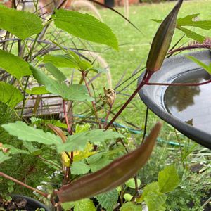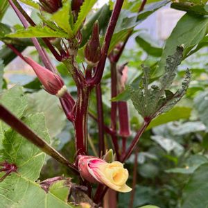 新規メンバーの赤オクラ 梅雨明けして暑いからオクラには良いかも!