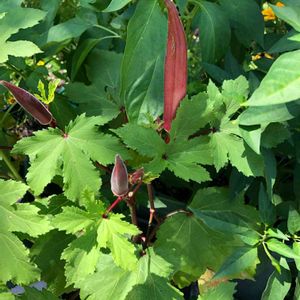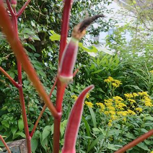 今日の庭から 赤オクラ、もうすぐ収穫かな😉