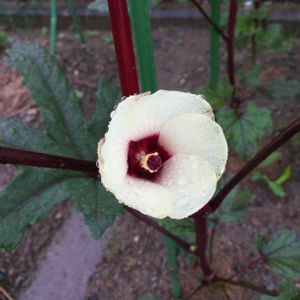 紅オクラ(o^^o) やっと実りました⤴︎ 今週は、時間に追われて 投稿しても、コメントのお返事や ❤返し遅れております。 お休みの日に ゆっくりお返事や❤致しますm(_ _)m
