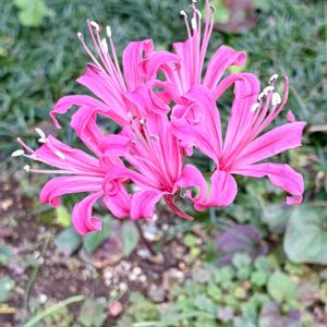 🌸ネリネ きれいなピンクのヒガンバナに似た花は、南アフリカのヒガンバナ科ネリネです。別名はダイヤモンドリリー。 ⚫︎ヒガンバナ科 ネリネ属 ⚫︎原産 南アフリカ ⚫︎花期 10月〜12月