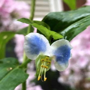 メガネツユクサ 去年道端で見つけて👀一株頂いて大事に育ててました😅 咲いてくれるのを今か今かと待ってたら☔️ 今朝咲いてました🥰 もしかして先祖返りでもするかなぁと思ってたけど😆 期待を裏切らなかったわ👏