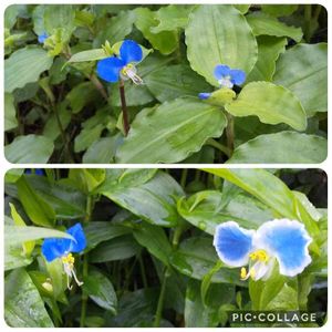 普通のツユクサも風情が有って良いけど、このメガネツユクサは、花が少し大きくて、白い覆輪がメガネの様で更に可愛い🥰 間違えて、「名前を教えて」で投稿してしまった写真を削除しました。回答をしてくれた方ごめんなさい🙇