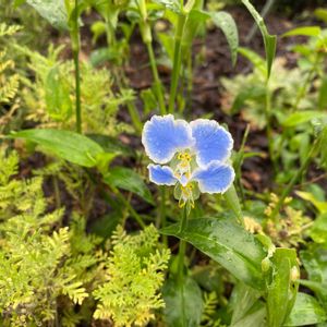 めがねつゆ草が咲いてます。 あぶらみちゃんさんから頂いた種から育てたもので無事開花してくれてとてもうれしい(´Д⊂ヽ 色合いや少しウエーブした花弁がロマンチックな感じでとても可愛い(´艸`*)