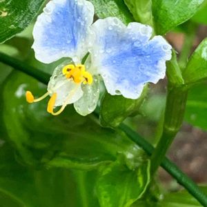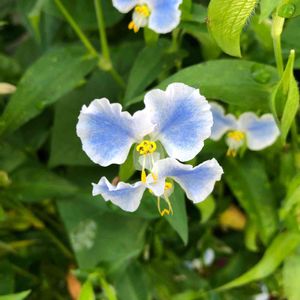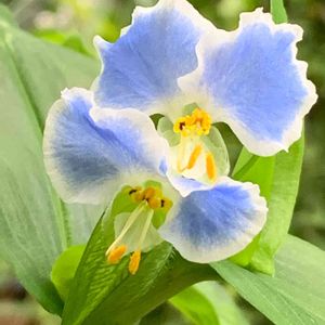 メガネツユクサ 淡いブルーに白い縁取り ひらひら花弁が可愛い💕 背丈は1メートルにも💕 ググったらお名前 出てきました😅