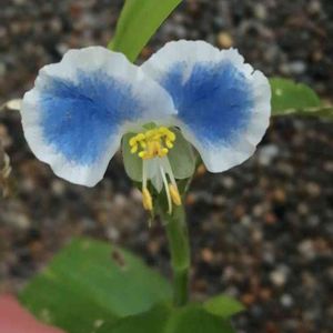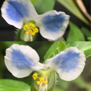 ツユクサ 昨日の🚶🏼♂️で出会い嬉しくなりました😻 白の縁どりが可愛い💕調べてみたらメガネツユクサと言うそうです❣️
