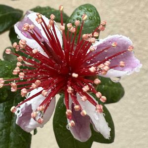 フェイジョア 鉢植えで大きくなってるフェイジョア そろそろ、地植えしてあげなくちゃね。。 🐕🦺のお散歩でお外に出て 雨☔降る中パシャリ📸(スマホ)笑