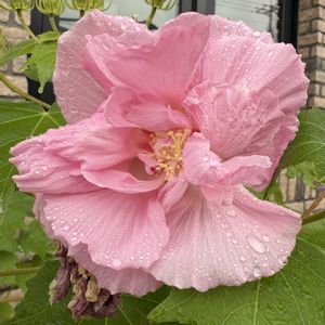 酔芙蓉 おやつの時間 雨上がり 濃いピンク色に… 色の変化も楽しみです😌
