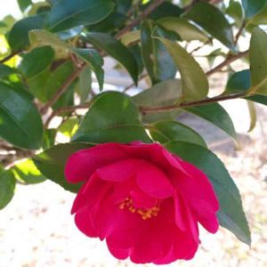 おはようございます😊 いつもありがとうございます💚 いつもの散歩道 大きな椿の花 8~9センチありました🌼
