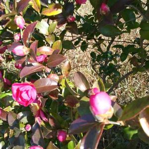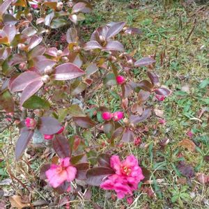 おはようございます😊 いつもありがとうございます💚 紅葉した山茶花 丸い蕾もかわいいです💕