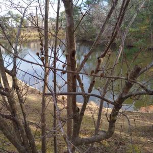 いつもの散歩道 公園にて サルスベリの実 池の上にはカモ🦆