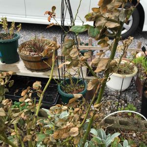 ジュビレ デュ プリンス ドゥ モナコ 塩害に遭い、葉が全部枯れていましたが花が咲き始めました。