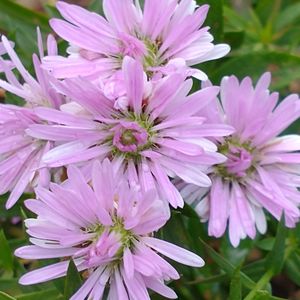 クジャクアスター(孔雀菊・キク科) 透きとおるような薄紫の花が 雨にぬれて〜より美しく💜