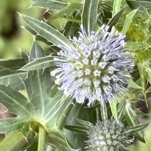 💜よく似た花💜 ①②③エリンジウム セリ科 別名 マツカサアザミ 和名 ヒゴタイサイコ 小花が集まって球状になり その周りを囲むように〰︎ トゲのある苞が広がるます🎶 ④⑤瑠璃玉薊(るりたまあざみ) 別名 エキノプス キク科 手毬のような球状の花が 長く伸びた茎の先端に咲く 「ハリネズミに似ている」🦔 つぼみはクリのイガみたいな形