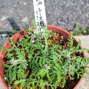 おはようございます。 4月19日に、 レースラベンダーの 挿し芽しました。 約1ヵ月経過して、低い草丈ですが、花が咲きそうです。