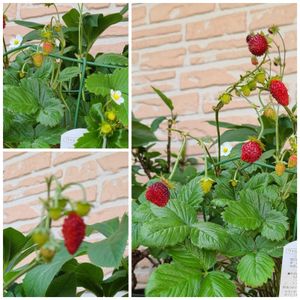こんにちは👋😃 ワイルドストロベリー バラ科、多年草。 開花期 5~6月 草丈 20~25cm 食用、香料、美容、 実は、生食、 デザートの飾付 葉は、ティー 日当たり良く、水はけの良い肥えた土を、好みます。 夏期は、半日陰で、風通しの良いところに移動。 表土が、乾いたら、たっぷり水を、与える。 肥料は、春、秋2~3回与える。 結構甘い実が収穫できてます。 白い小花も、可愛いです。 受粉させなくても実がなってます。 葉っぱで、お茶も、飲めるらしいので、良いお得なハーブです。