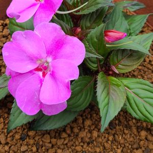 こんにちは👋😃 サンパチェンス 4年連続育ててます。 今年は、 ラベンダースプラッシュ お迎えしてからだいぶ経ちました。 その間に、蕾があがり 花が咲いたばかりの苗 肩の土を落とし、少し浅植え付けて、最後に赤玉小粒のせて、水やりのタイミングの目安に、しました。乾くと色が明るくなるからです。 8号鉢に、植えました。 昨年は、最初5号鉢から育てましたが、鉢がなくて仕方なく。 鉢も、ストックが、要ります。