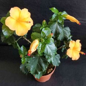おはようございます。 3月に、剪定していた 3年目のハイビスカス ミセスユミ。 半年ぶりに、花が咲きました。 株は、大きくなりました。 元居た場所には、置けなくなりました。 写真を、撮るために、いつものソファーの上で、パチリ。 花径は、11cm また、お顔が、 見れて嬉しいです。 このあと、軒下の棚に、戻しました。 蕾も、あと、3つは、確認しました。 あきらめないで、良かったです。