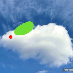 雲仲間 昨日の1枚 病院へ行く途中 昔、南天の葉と実を付けて作った、雪うさぎみたいな雲☁️を見つけました。