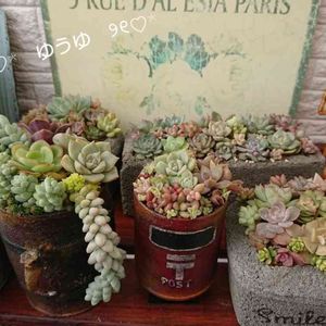 以前、ちぃさんと交換会をさせていただいてGETしたポストリメ缶((´∀`*)) やっと、うちの多肉たちがたくさん増えたので寄せ植えしましたぁ(๑و•̀Δ•́)و 初心者なもので、センスもなくうまく寄せ植えできずっ💦 そして、また②ハロウィンディスプレイ増えちゃいましたぁ😅 このガーランド、SALEでたしか100円だったかなぁ😌
