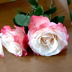 ノスタルジー🌹 咲き始めは 全体的に濃いピンク色なのに 咲き進む こんな色になります 🏷️花の中心部は白で外側は明るい赤色の花は丸弁平咲き。 強香があるが花もちがよく、花付きも良い。 樹形は半横張り性で二番花以降はつるばらのようなシュートが伸びる。 冬季剪定では樹高の1/2位を目安に切り戻す。 低いフェンスならばつるバラのようにも利用できる。 ウドンコ病、黒点病に耐性があり育てやすい。 昨夜の大雨と風で折れてました😥😥