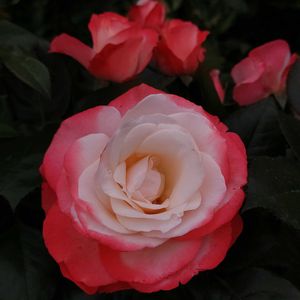 おはようございます☺ 去年まで紫陽花を色々増やしていた私ですが今年は、安価な品種のバラを増やしております😊 その中で特売で迎えた品種をご紹介🌹 ノスタルジーって言う品種で病気に強いらしく花弁が縁が濃く日が経過する毎に全体に赤くなるバラです。 1️⃣〜4️⃣へ3日間色の変化をアップしました✨ 個人的に2️⃣が一番好き🩷な状態です✨