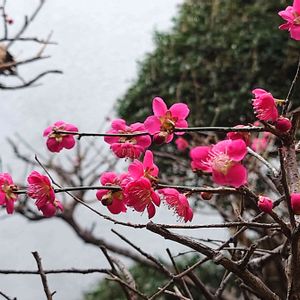 初節句🎎 桃も飾りました🌸 庭の紅梅も祝ってくれたみたい💗