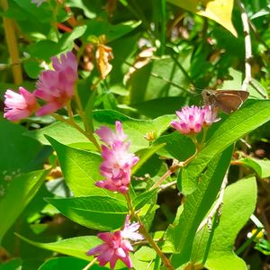 オオミゾソバ ミゾソバに比べて大ぶりで、ピンクも全体的に濃い! 吸蜜されてます🦋