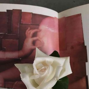 ご近所さんからいただいた純白の薔薇🌹お気に入りの写真集の上で撮影する。