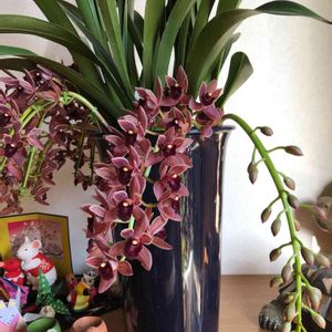 シンビジューム: サムライ・ソウル🤎 先日訪れた福岡蘭展でget❣️ 花と花とが詰まっていない、シックな色、など、不思議さ満載❣️ 我が家では、「スズメちゃん」と呼んでいます🦉