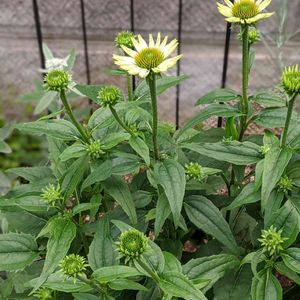 南西ベランダのエキナセア パウワウホワイト エキナセアという名前の由来がギリシャ語のハリネズミ🦔ということを最近知りました😊